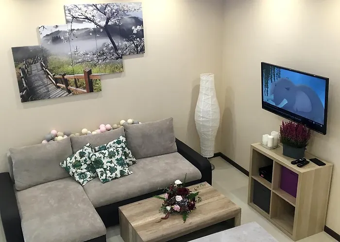 Apartament Na Pradze Appartement heeft een balkon en een zitruimte, voorzien van een bank en moderne gemakken zoals een satelliet-TV en een flatscreen TV met satellietzenders. Tot de veiligheidsvoorzieningen op de kamer behoren rookmelders. Dit appartement heeft ook een inloopdouche en een apart toilet. Verder zijn er een haardroger en handdoeken beschikbaar.